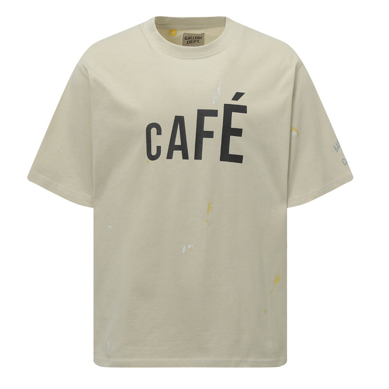 GALLERY DEPT. Men's Natural Paint-Splattered Distressed Printed Cotton-Jersey T-