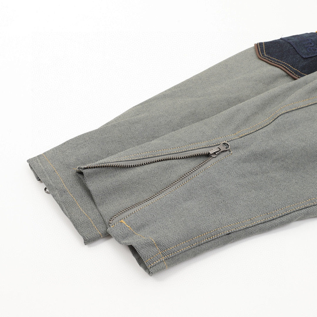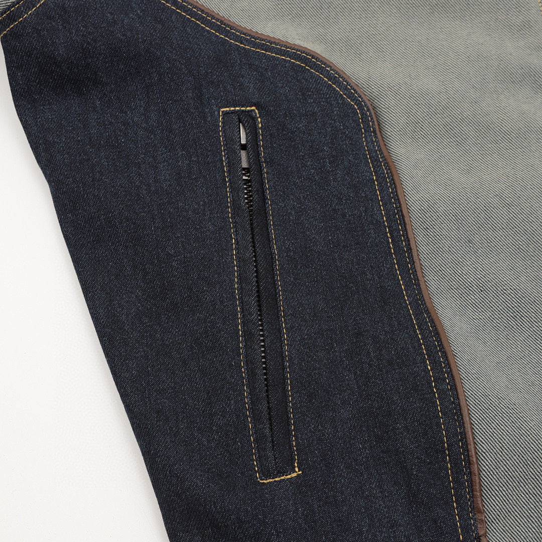 • Leather Logo Appliqué Zippered American Trend Jacket
