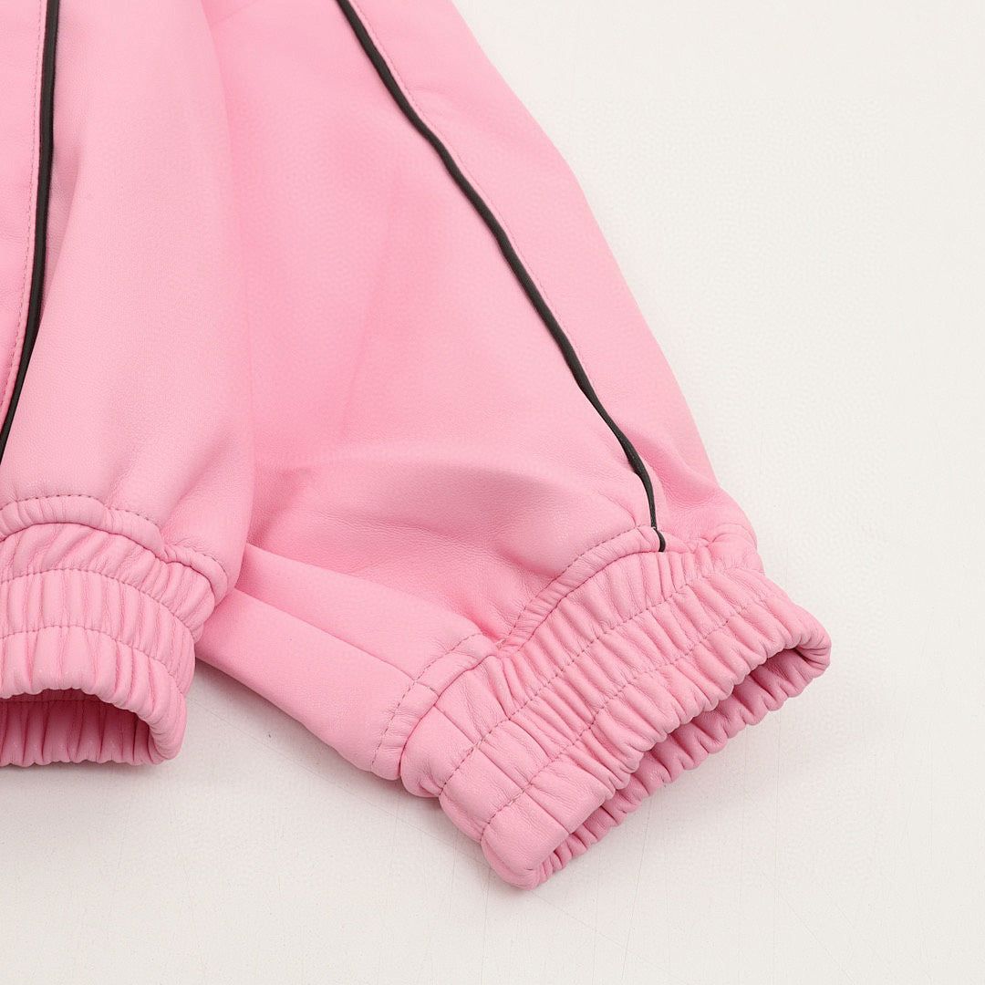 • Made of soft leather with a mesh lining. Features a patched zippered hand pocket at the lower front and an interior chest pocket. Elastic cuffs and leather hem. YKK zipper. Embroidered logo on the chest and back neck.