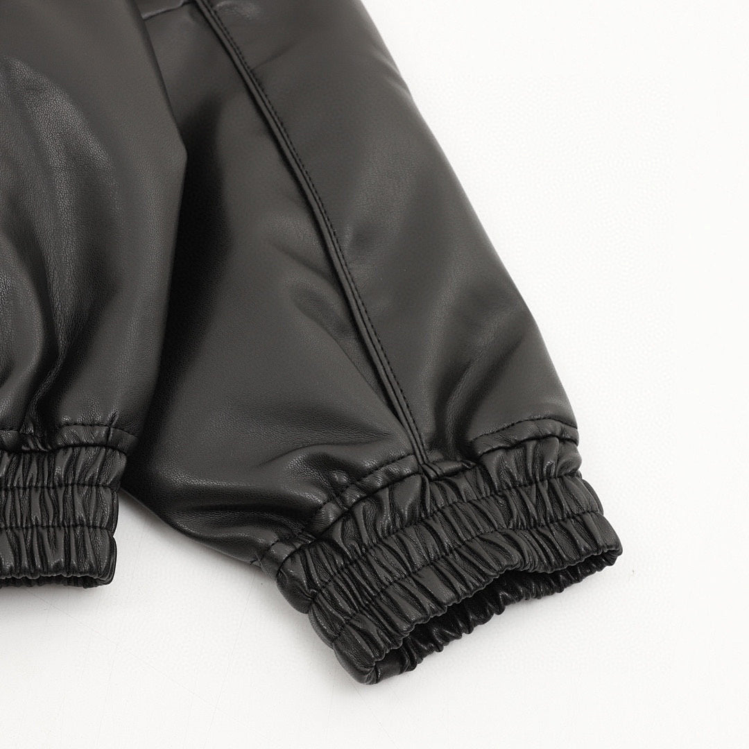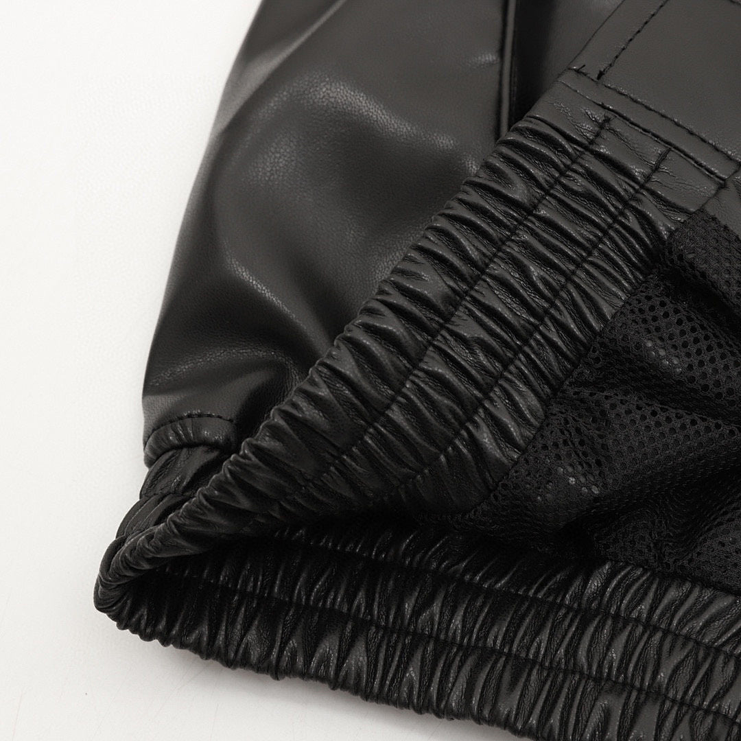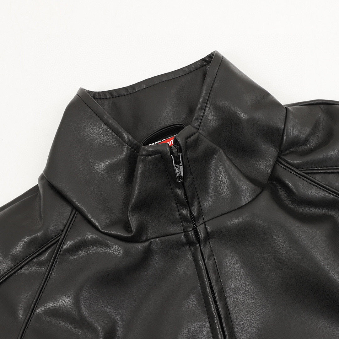 • Made of soft leather with a mesh lining. Features a patched zippered hand pocket at the lower front and an interior chest pocket. Elastic cuffs and leather hem. YKK zipper. Embroidered logo on the chest and back neck.